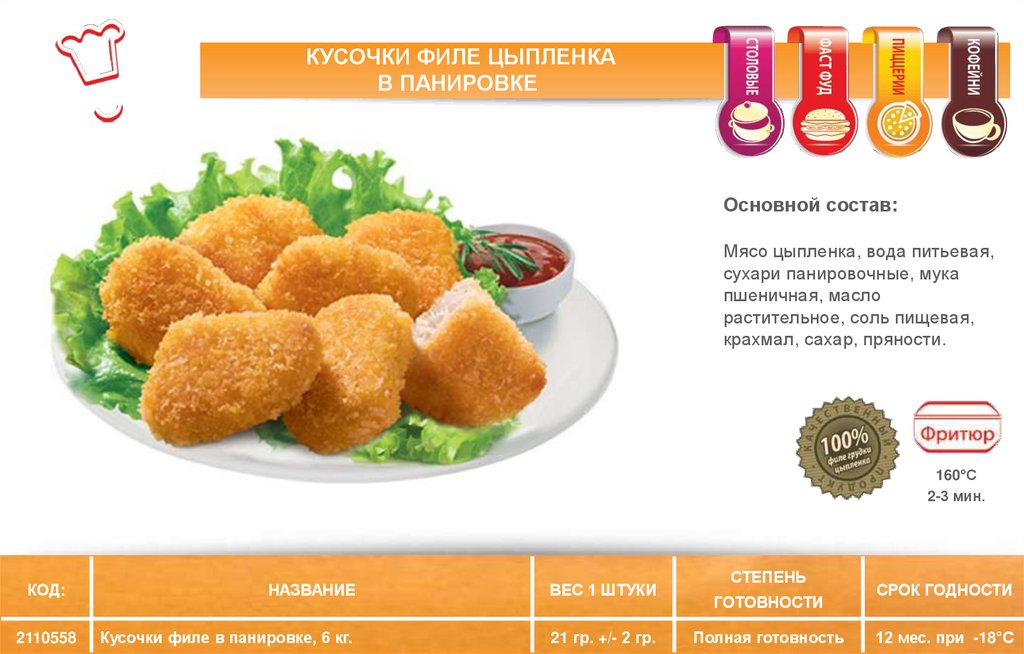 КУСОЧКИ ФИЛЕ ЦЫПЛЕНКАВ ПАНИРОВКЕ