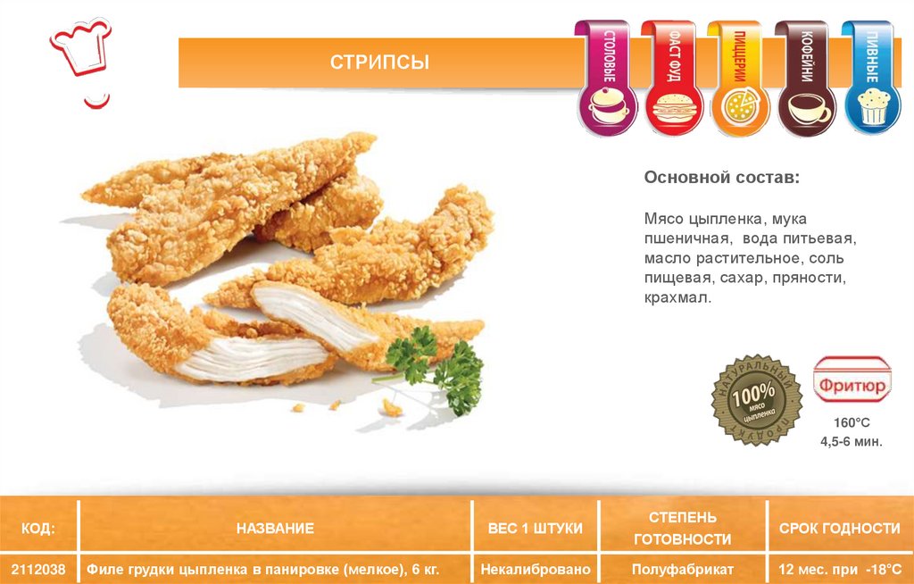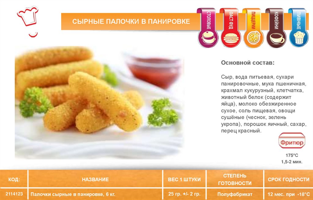 СЫРНЫЕ ПАЛОЧКИ В ПАНИРОВКЕОсновной состав: