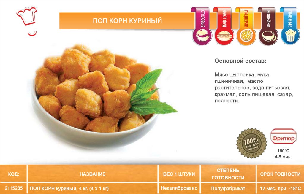 ПОП КОРН КУРИНЫЙОсновной состав: