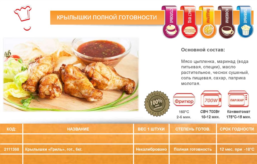 замороженных полуфабрикатов