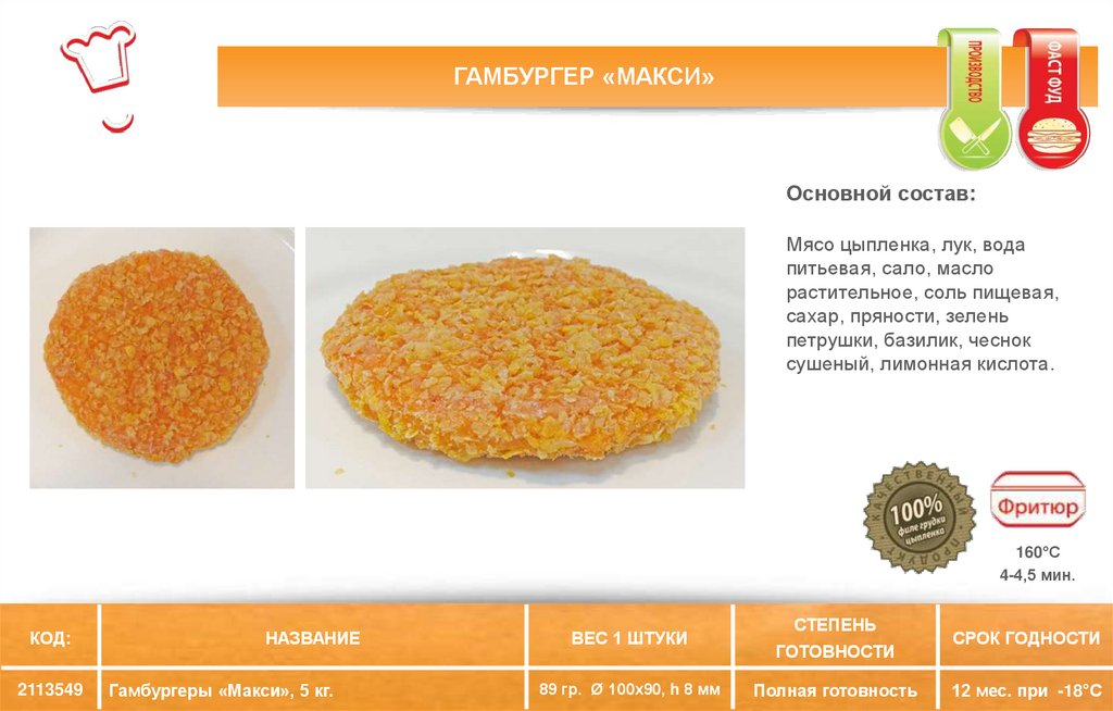 ГАМБУРГЕР «МАКСИ»Основной состав: