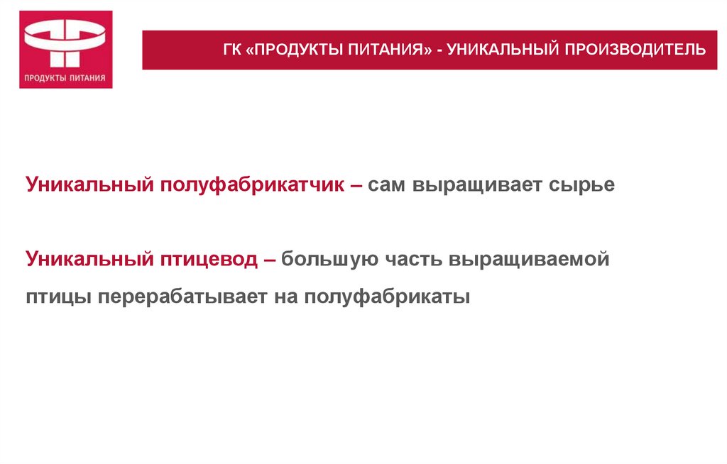 ГК «ПРОДУКТЫ ПИТАНИЯ» - УНИКАЛЬНЫЙ ПРОИЗВОДИТЕЛЬУникальный полуфабрикатчик – сам выращивает сырье