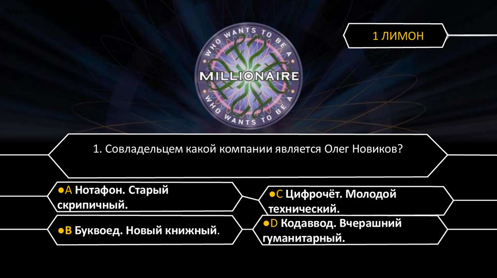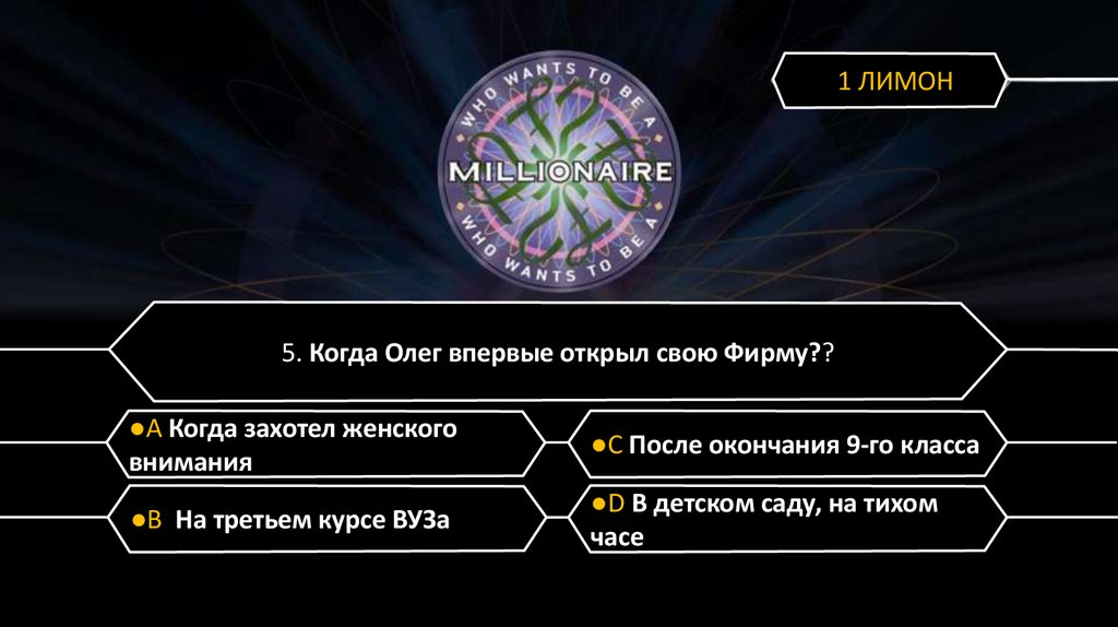 1 ЛИМОН5. Когда Олег впервые открыл свою Фирму??