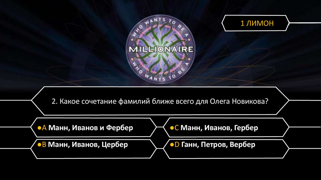1 ЛИМОН2. Какое сочетание фамилий ближе всего для Олега Новикова?