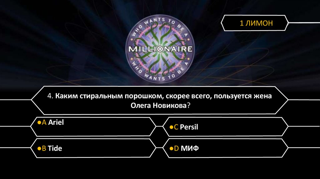 1 ЛИМОН4. Каким стиральным порошком, скорее всего, пользуется жена