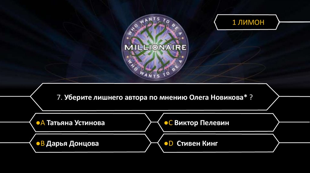 1 ЛИМОН7. Уберите лишнего автора по мнению Олега Новикова* ?