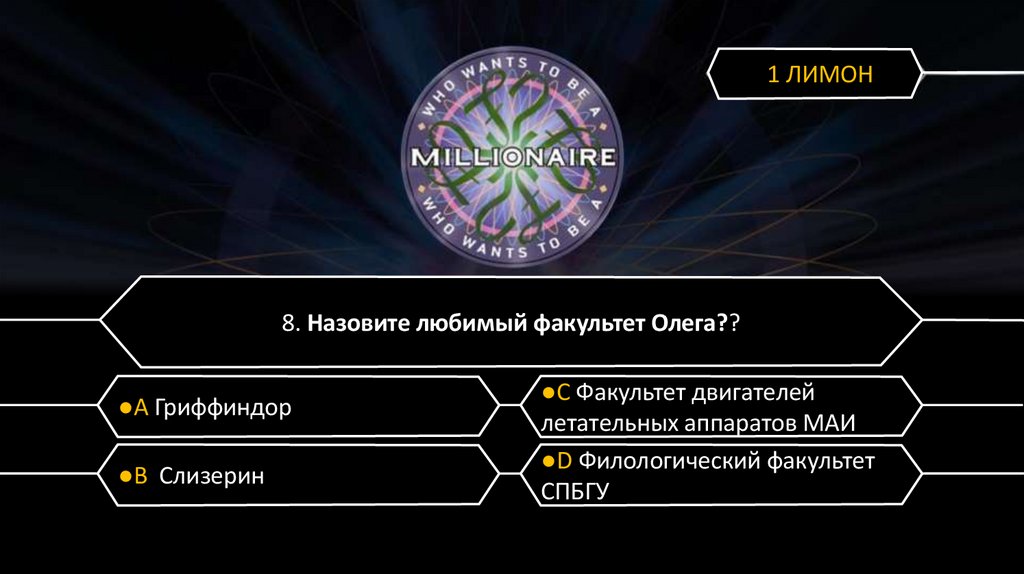 1 ЛИМОН8. Назовите любимый факультет Олега??