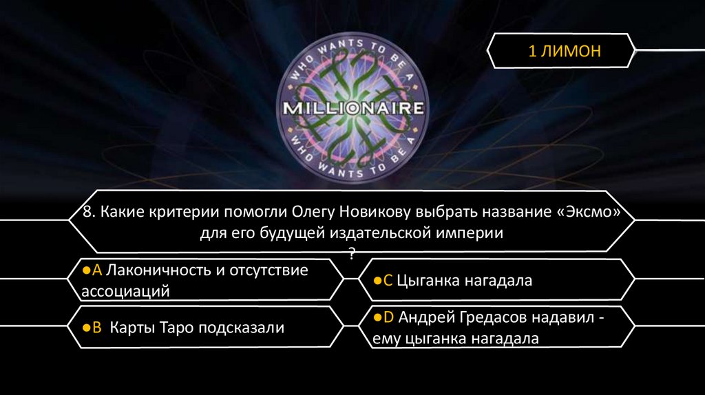 1 ЛИМОН8. Какие критерии помогли Олегу Новикову выбрать название «Эксмо»