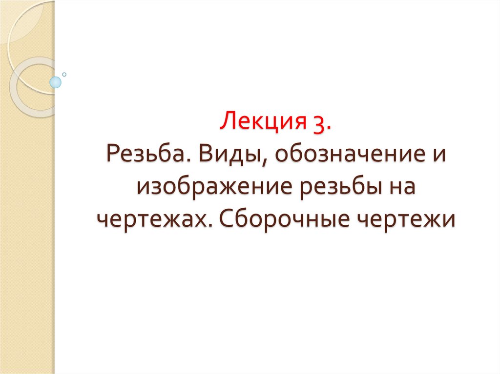 3Резьба. Виды, обозначение и изображение резьбы на чертежах. Сборочные чертежи. Лекция 3