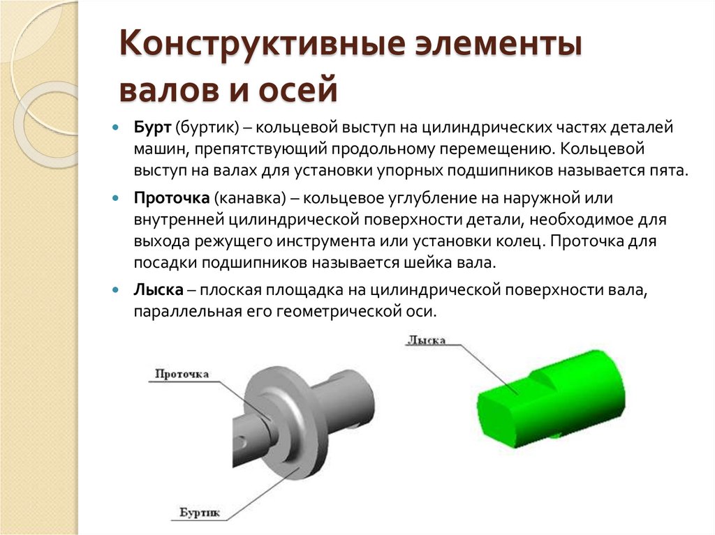 Бурт (буртик) – кольцевой выступ на цилиндрических частях деталеймашин, препятствующий продольному перемещению. Кольцевой