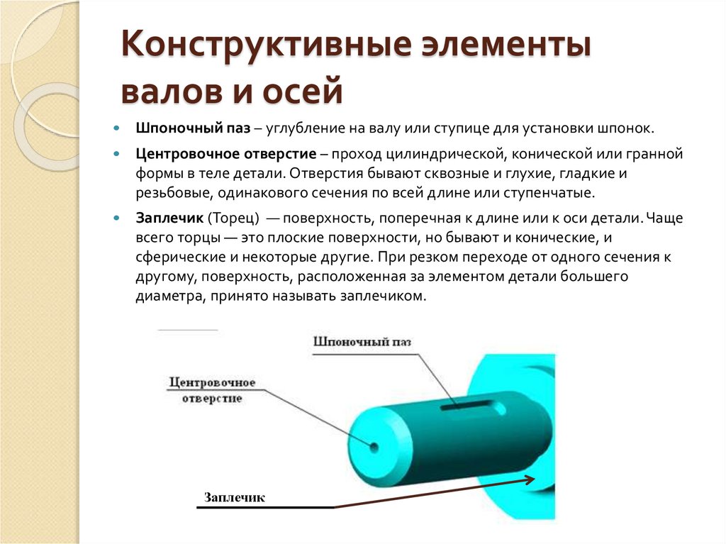 Шпоночный паз – углубление на валу или ступице для установки шпонок.Центровочное отверстие – проход цилиндрической, конической или гранной