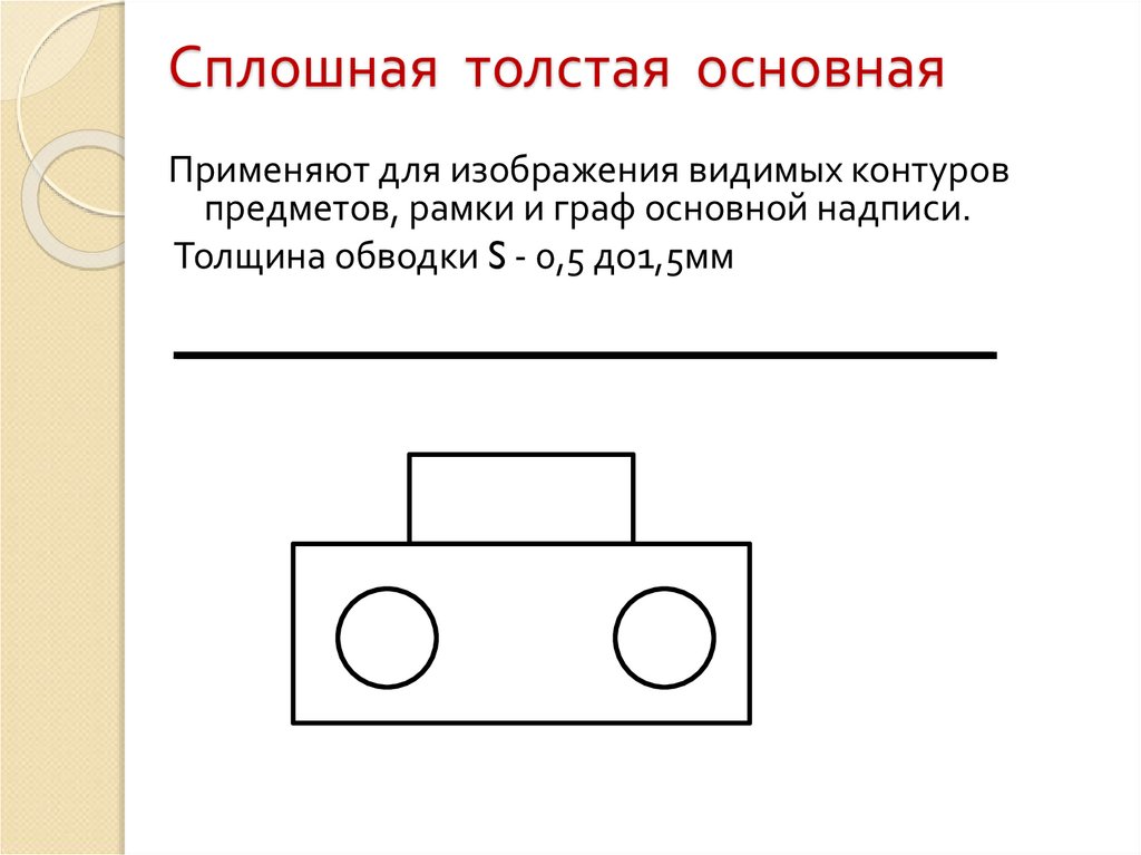 Применяют для изображения видимых контуровпредметов, рамки и граф основной надписи.