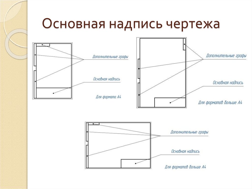 Содержание основной надписи, её расположение и размеры регламентируются стандартом.