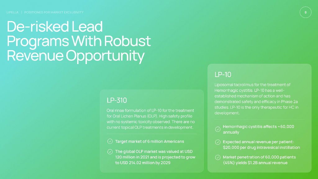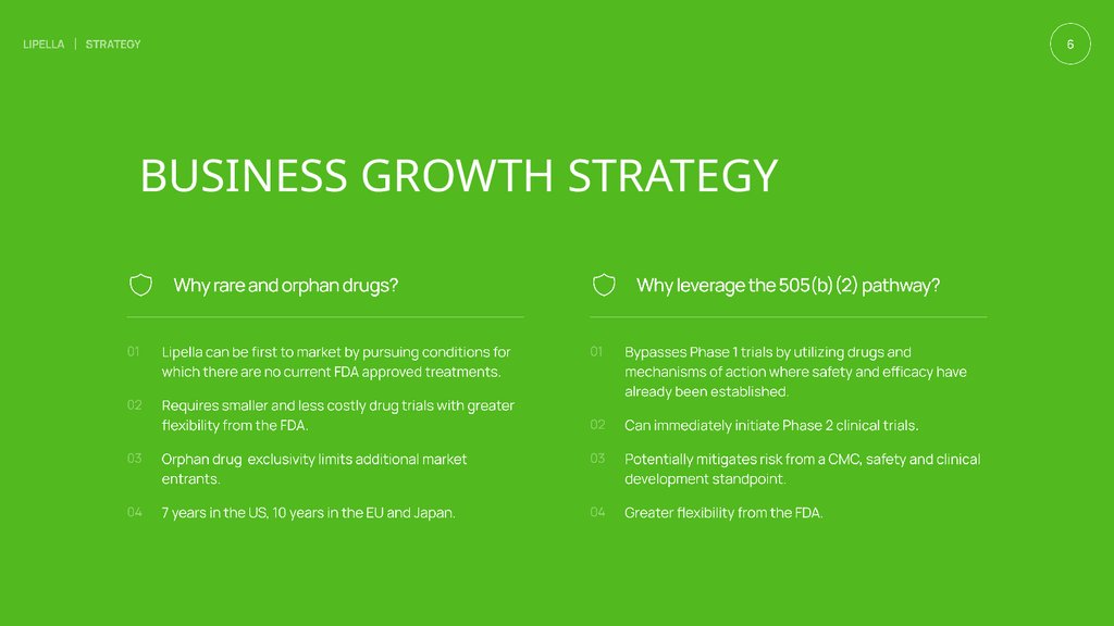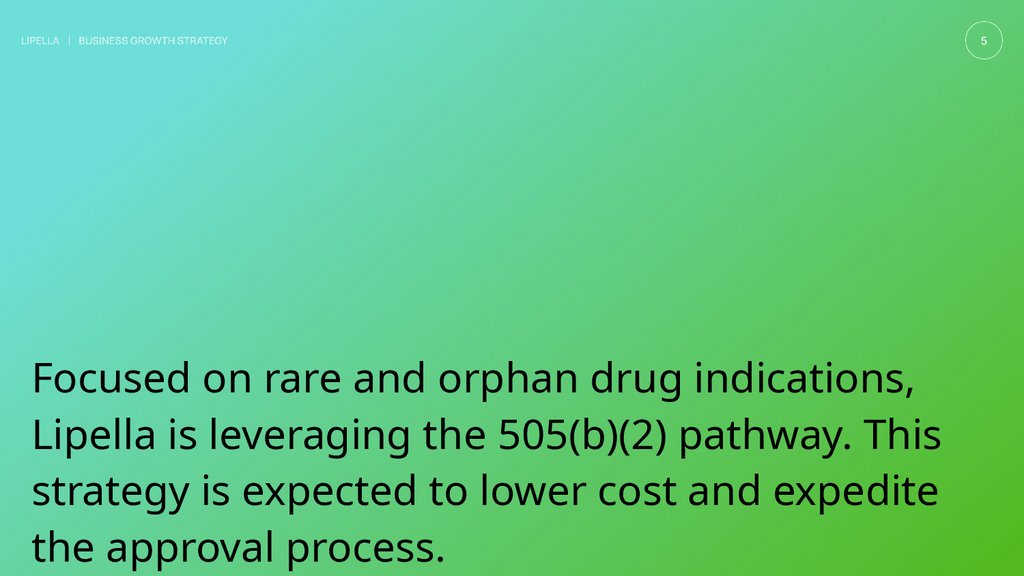 Focused on rare and orphan drug indications,Lipella is leveraging the505(b)(2) pathway. This