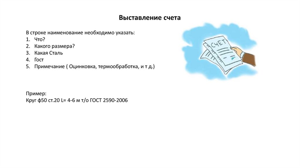 Выставление счетаВ строке наименование необходимо указать: