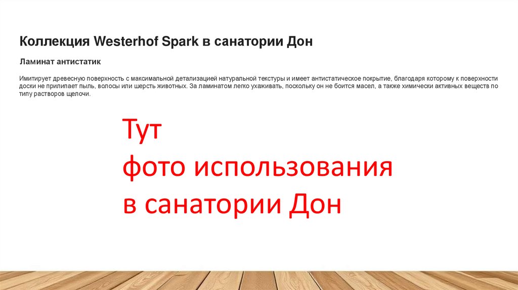 Коллекция Westerhof Spark в санатории ДонЛаминат антистатик