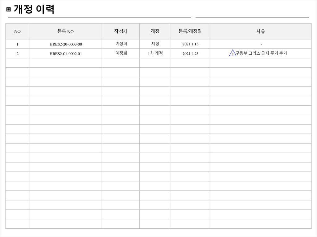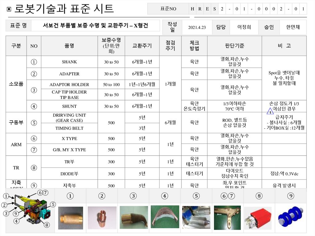 서보건 부품별 보증 수명 및 교환주기 – X형건