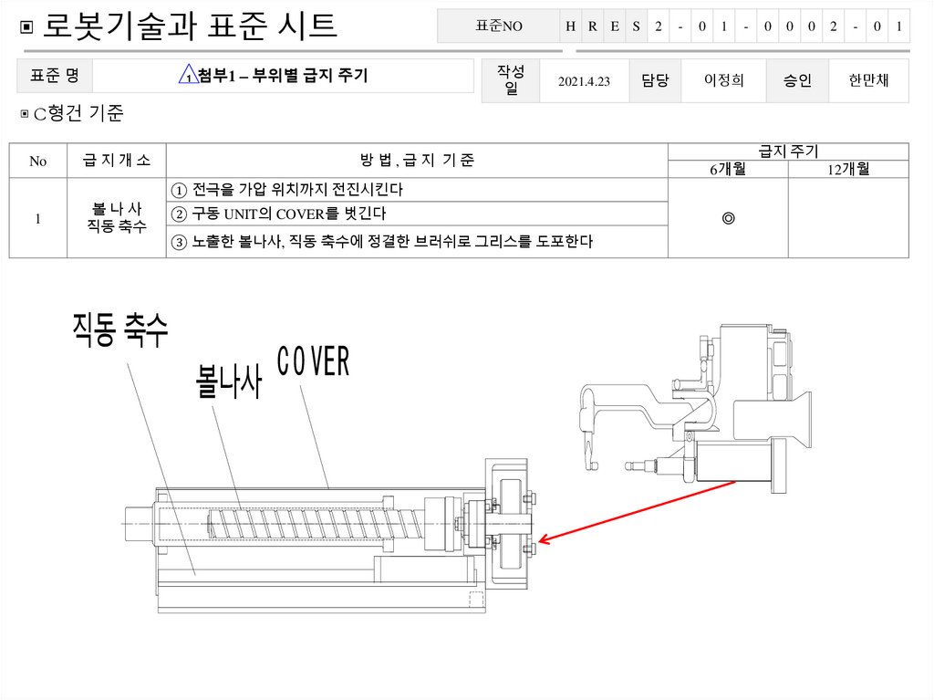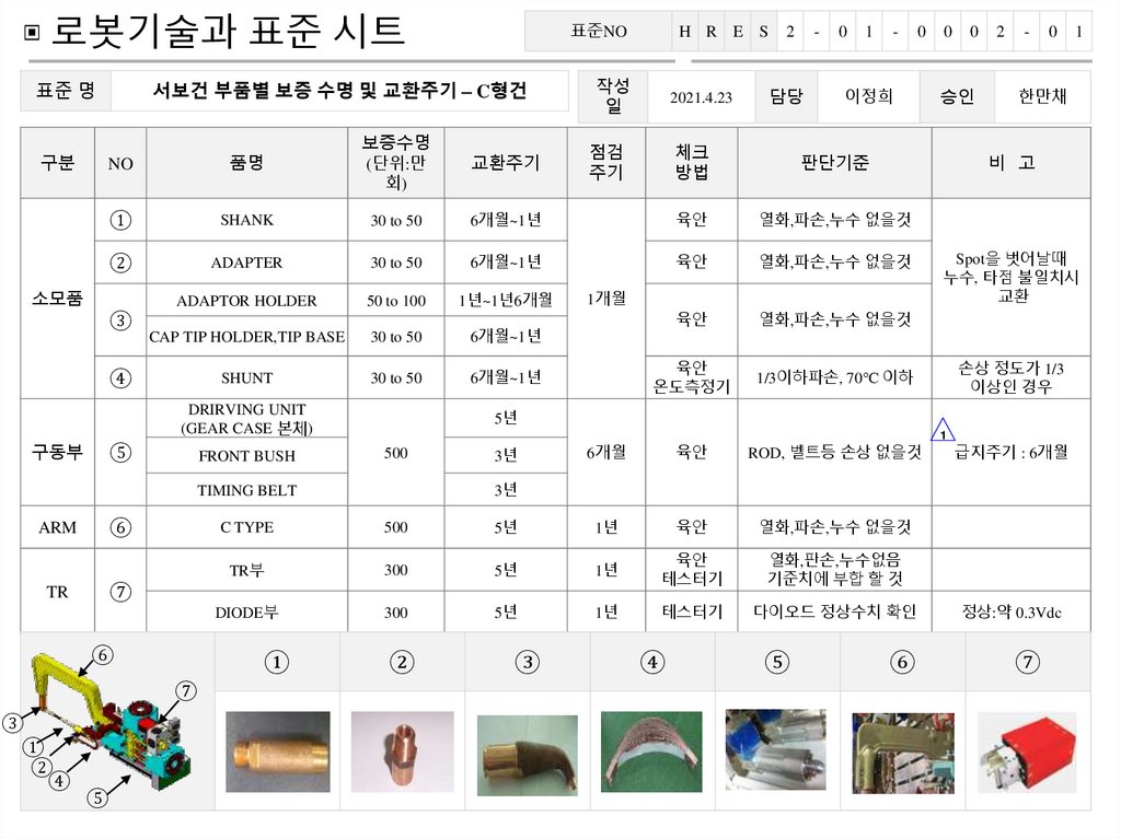 서보건 부품별 보증 수명 및 교환주기 – C형건