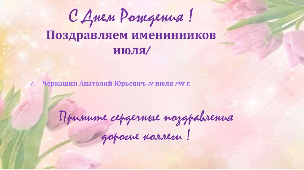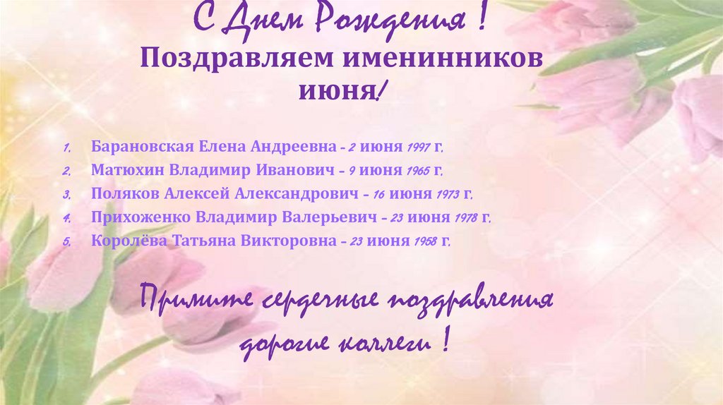 1. С Днем Рождения ! Поздравляем именинников июня!