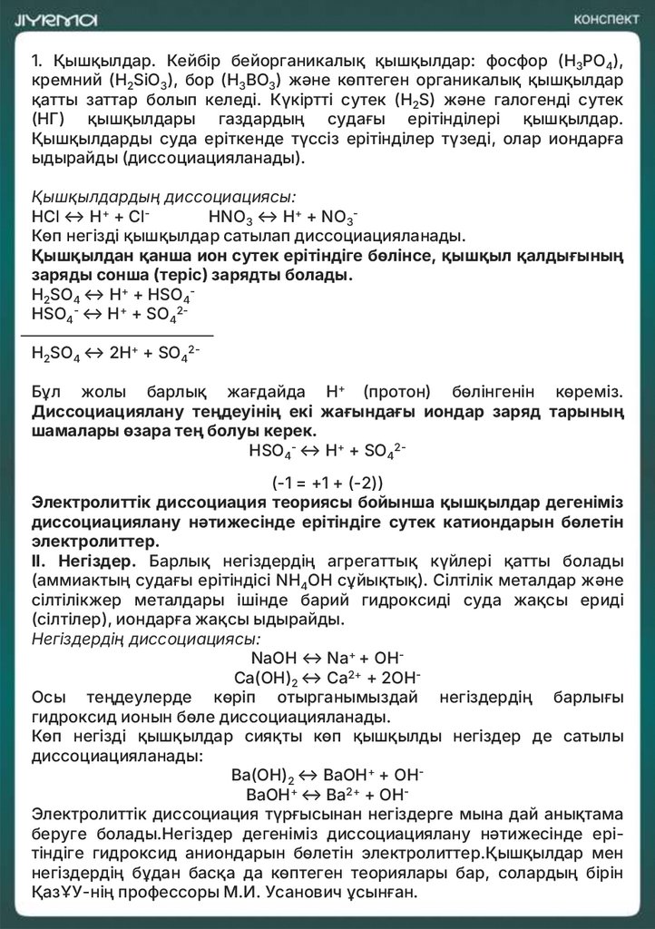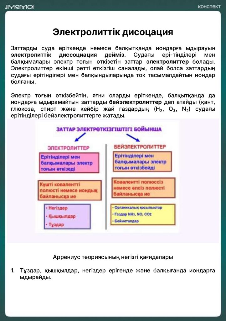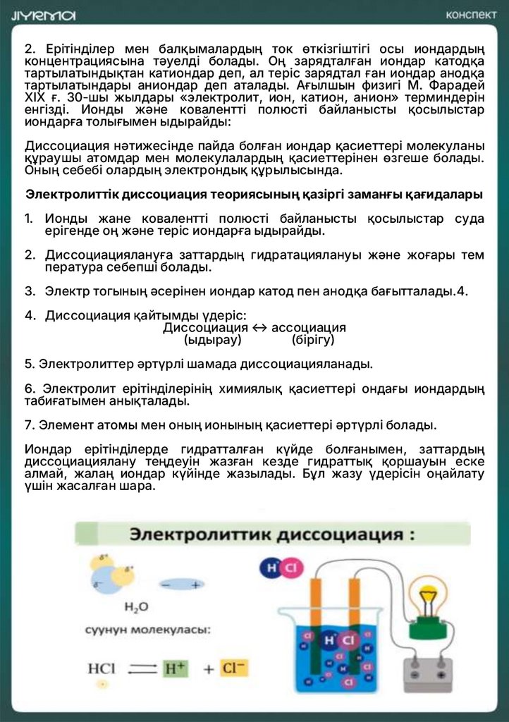 1. Тұздар, қышқылдар, негіздер ерігенде және балқығанда иондарға