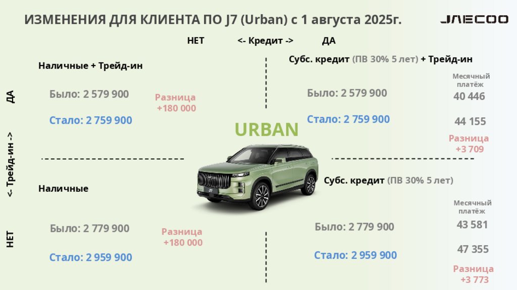 ИЗМЕНЕНИЯ ДЛЯ КЛИЕНТА ПО J7 (Urban) с 1 августа 2025г.НЕТ