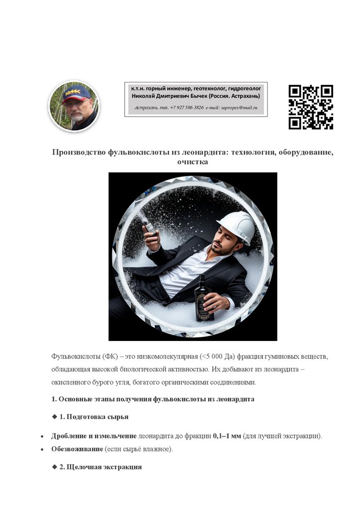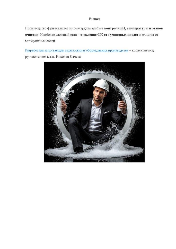 Производство фульвокислоты из леонардита - технология, оборудование, очистка