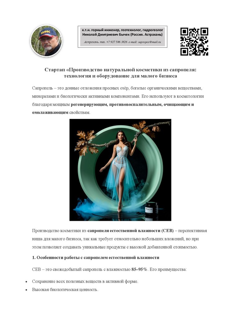 Производство косметики из сапропеля естественной влажности (СЕВ) – перспективная