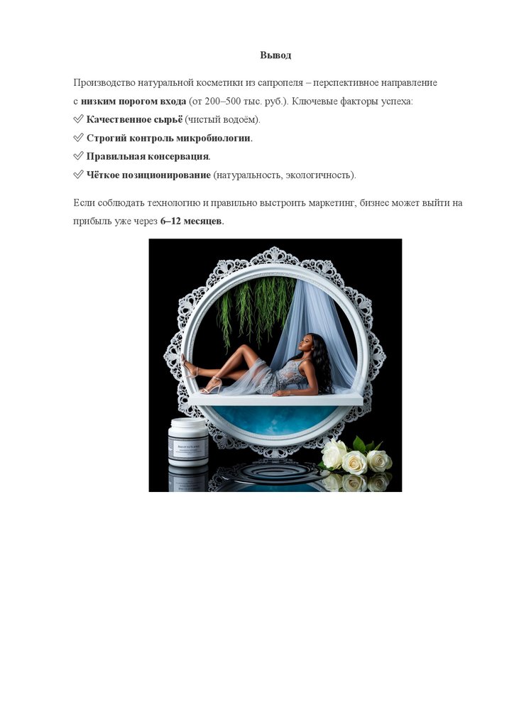 ВыводПроизводство натуральной косметики из сапропеля – перспективное направление