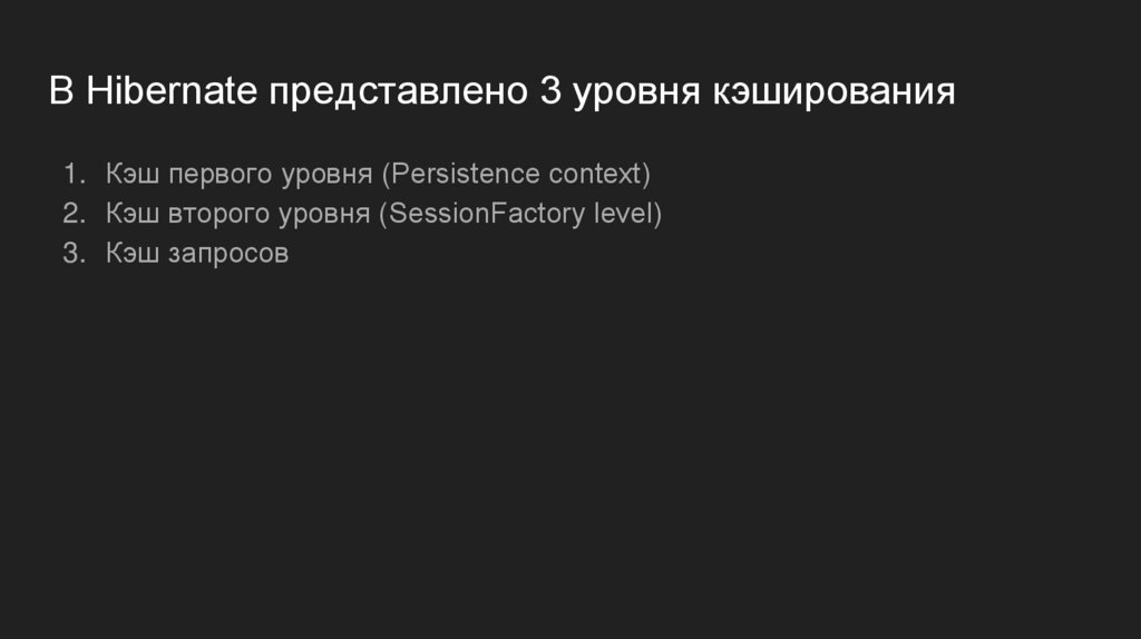 В Hibernate представлено 3 уровня кэширования1. Кэш первого уровня (Persistence context)