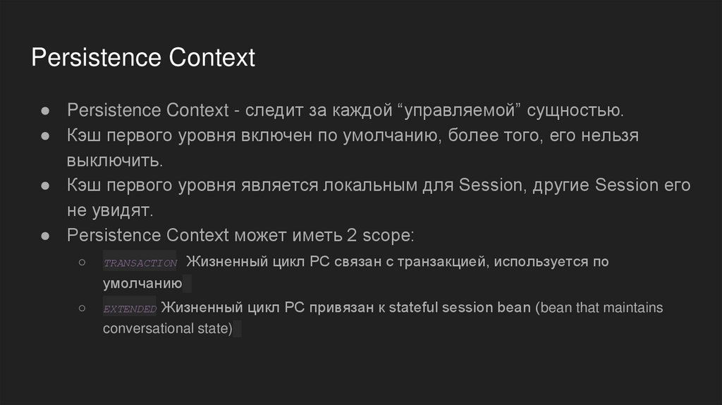 Persistence Context● Persistence Context - следит за каждой “управляемой” сущностью.