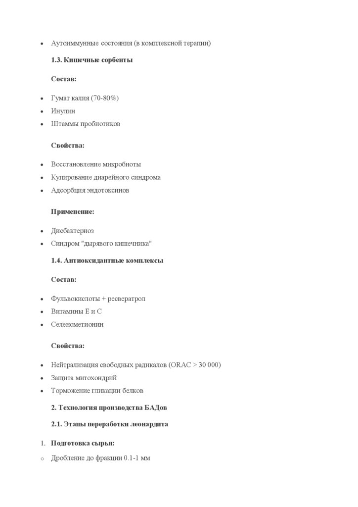 Функциональные БАДы из леонардита: виды, свойства, технологии