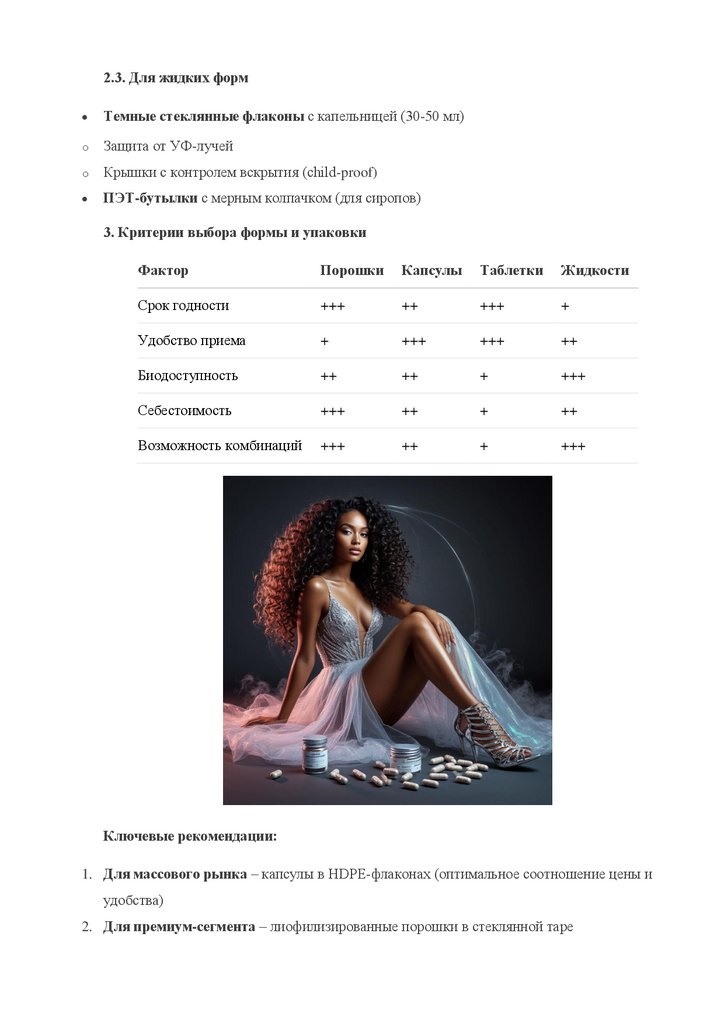 1. Для массового рынка – капсулы в HDPE-флаконах (оптимальное соотношение цены и