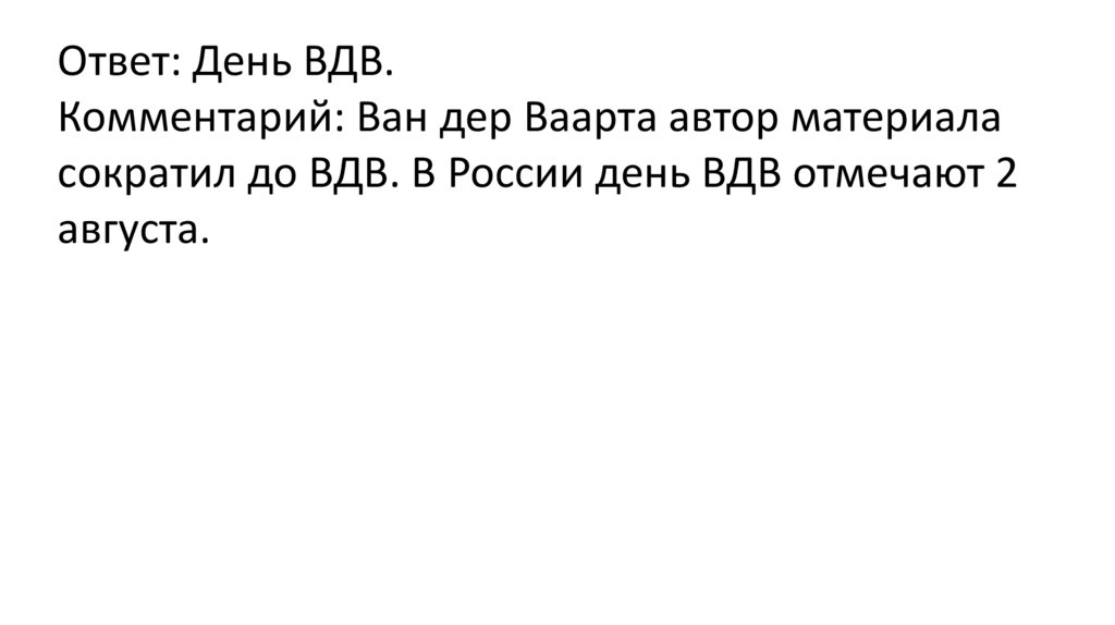 Ответ: День ВДВ.Комментарий: Ван дер Ваарта автор материала