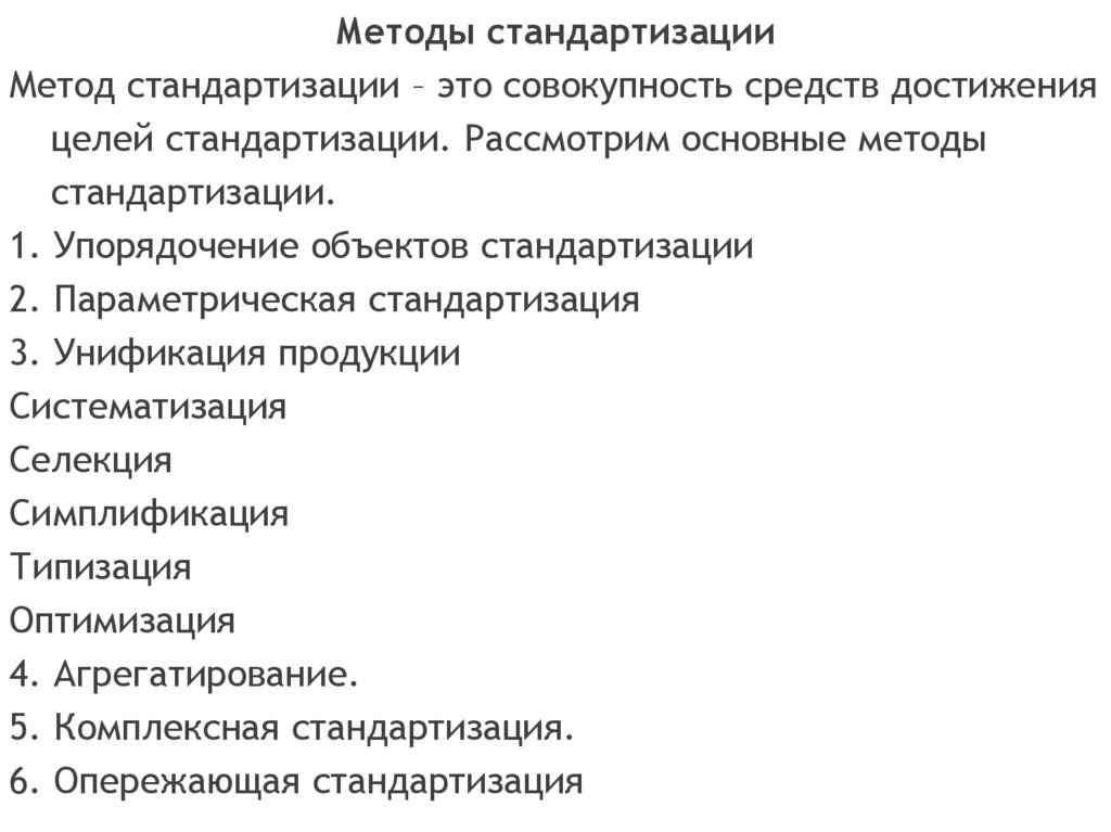 целей стандартизации. Рассмотрим основные методы