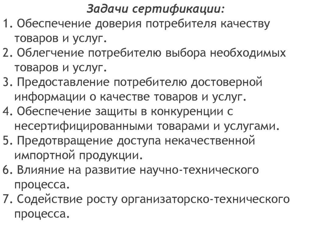Задачи стандартизации:- повышение уровня безопасности жизни и здоровья граждан