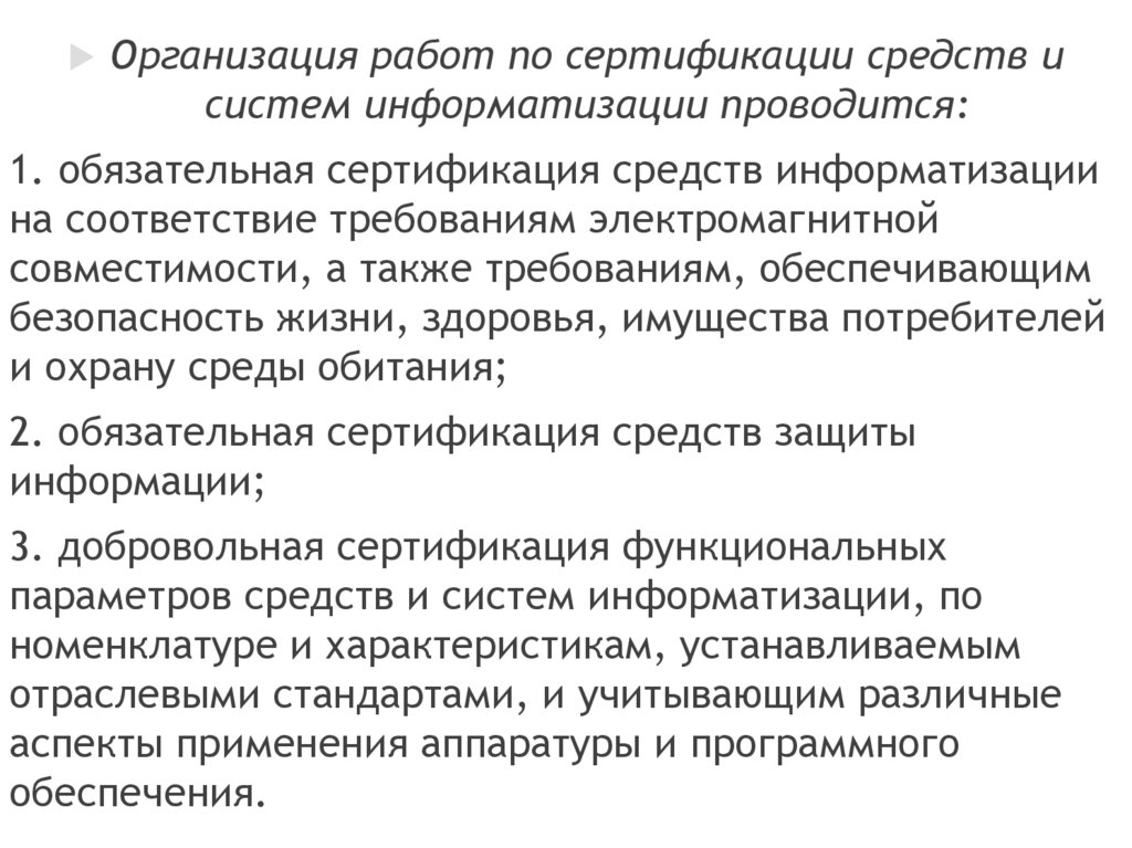 1. обязательная сертификация средств информатизации