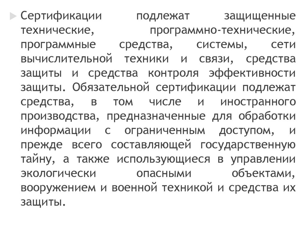 защиты. Обязательной сертификации подлежат