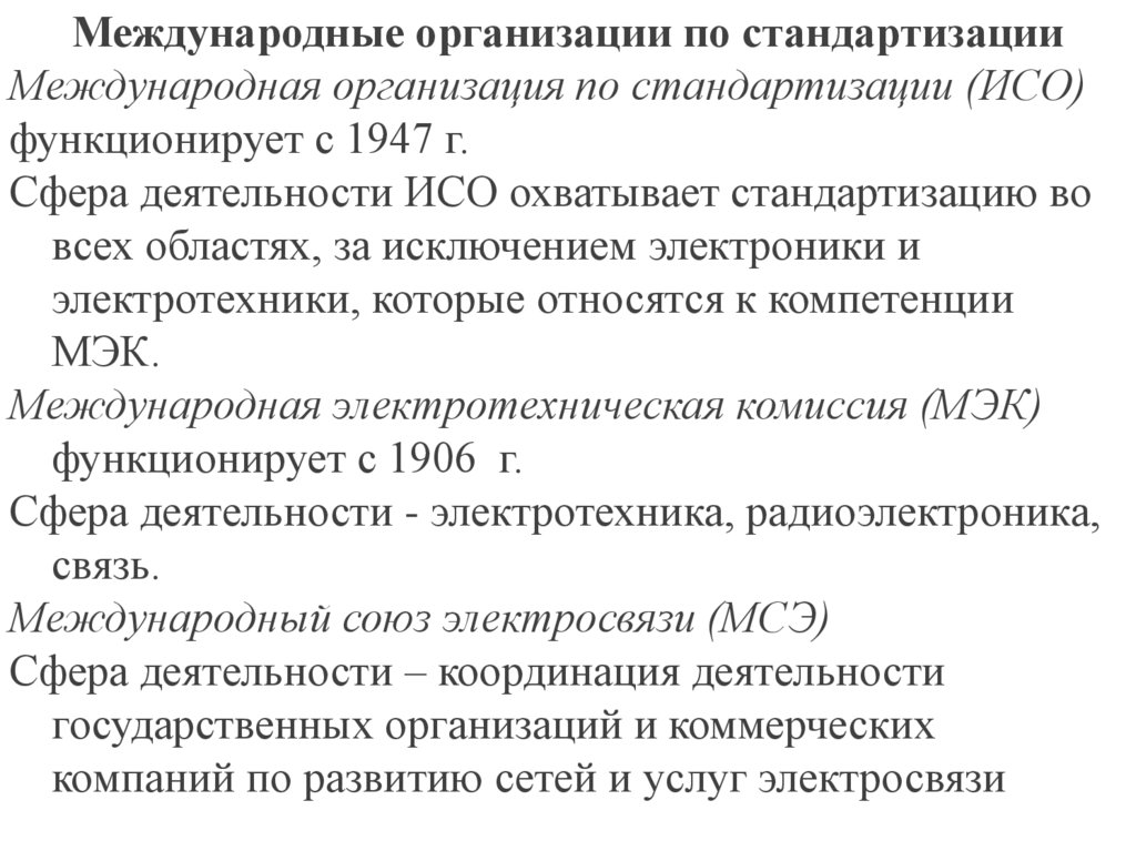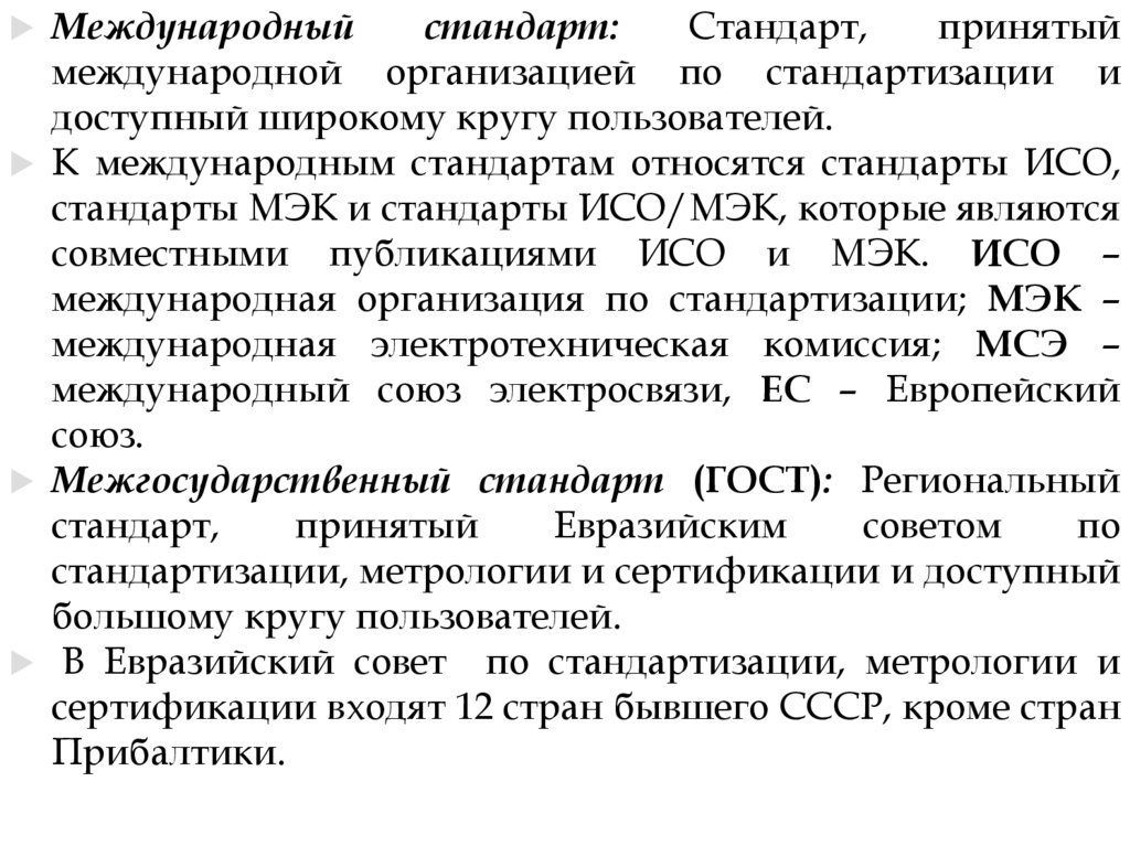Международные стандарты.
