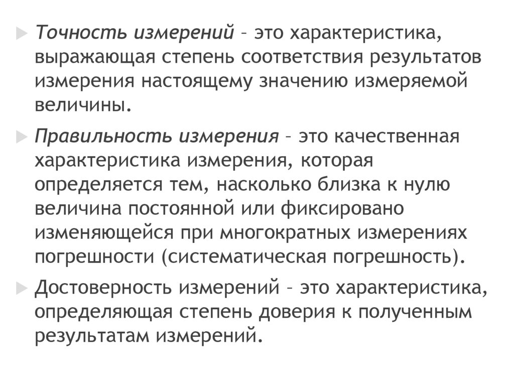 6) достоверность измерений.