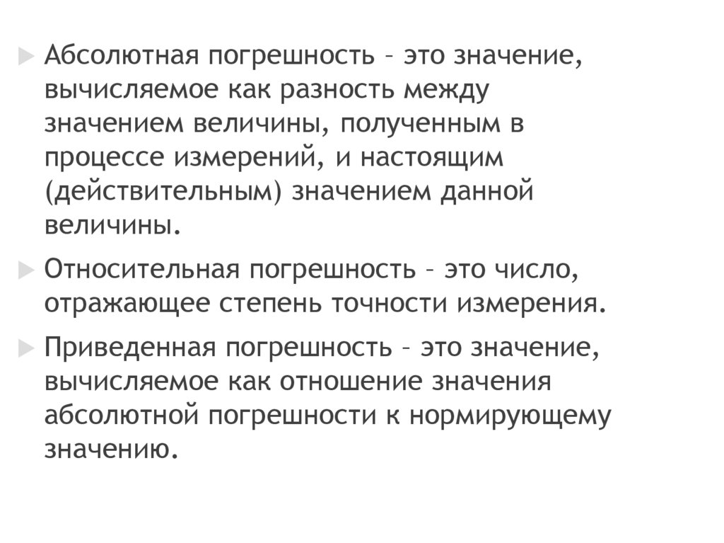 значения погрешностей.