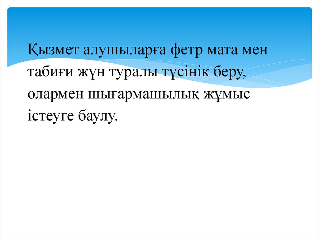 Қызмет алушыларға фетр мата ментабиғи жүн туралы түсінік беру,