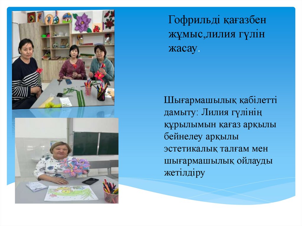 11. Гофрильді қағазбен жұмыс,лилия гүлін жасау.