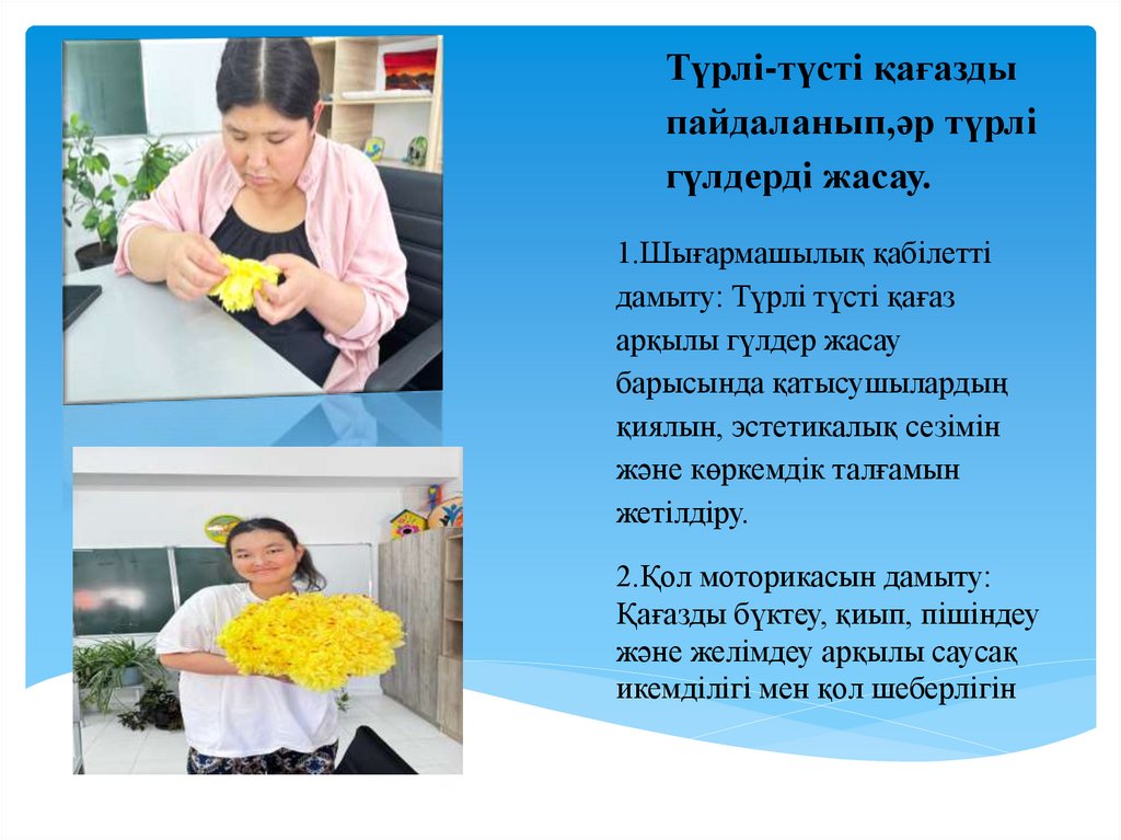 1.Шығармашылық қабілеттідамыту: Түрлі түсті қағаз