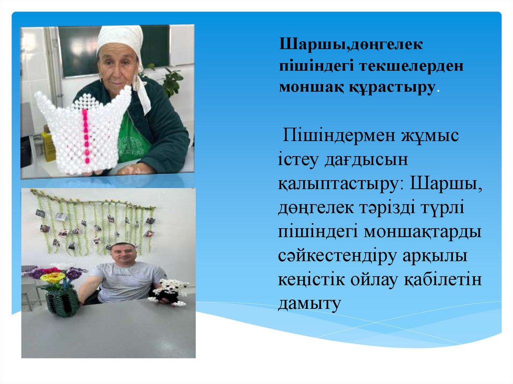 16. Шаршы,дөңгелек пішіндегі текшелерден моншақ құрастыру.