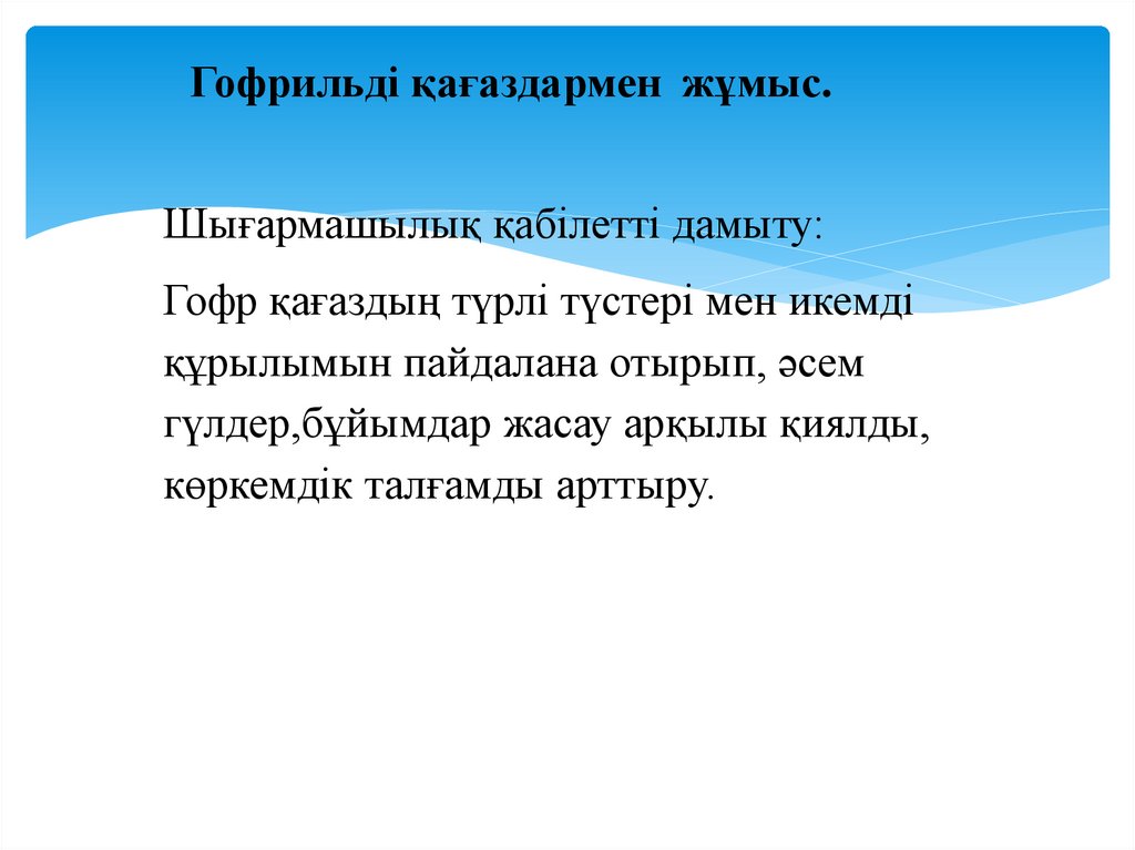 Шығармашылық қабілетті дамыту:Гофр қағаздың түрлі түстері мен икемді