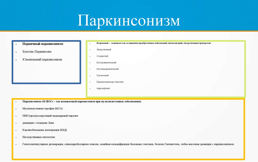 Паркинсонизм «ПЛЮС» - так называемый паркинсонизм при мультисистемных заболеваниях