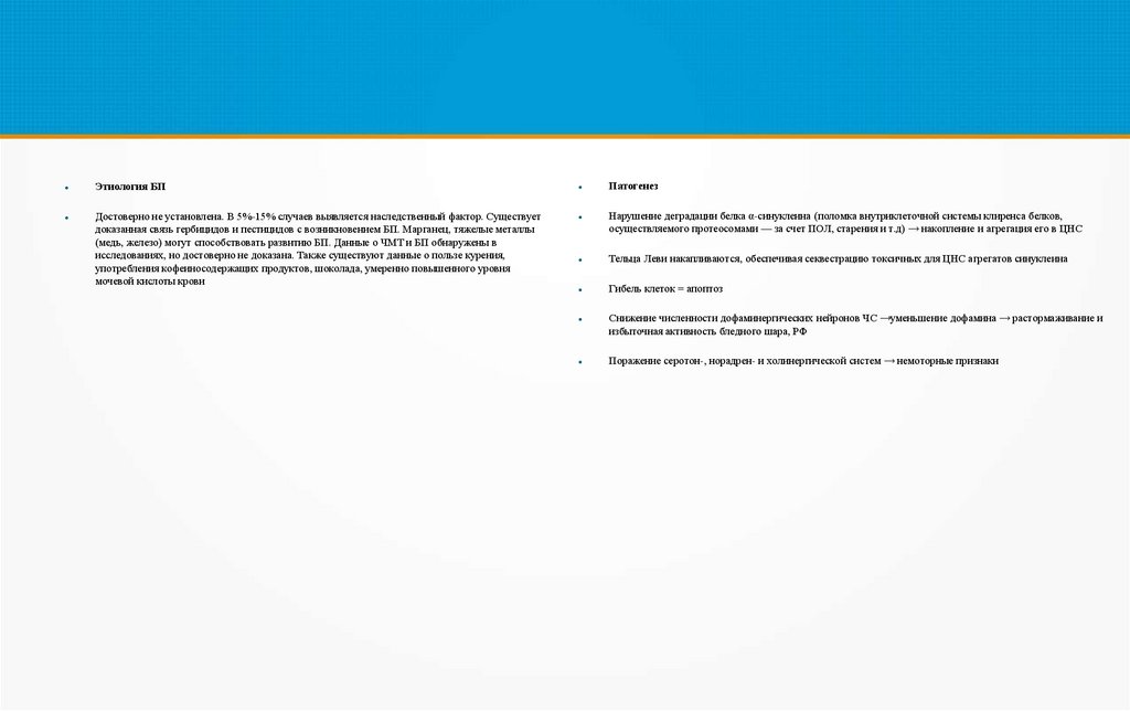 (медь, железо) могут способствовать развитию БП. Данные о ЧМТ и БП обнаружены в