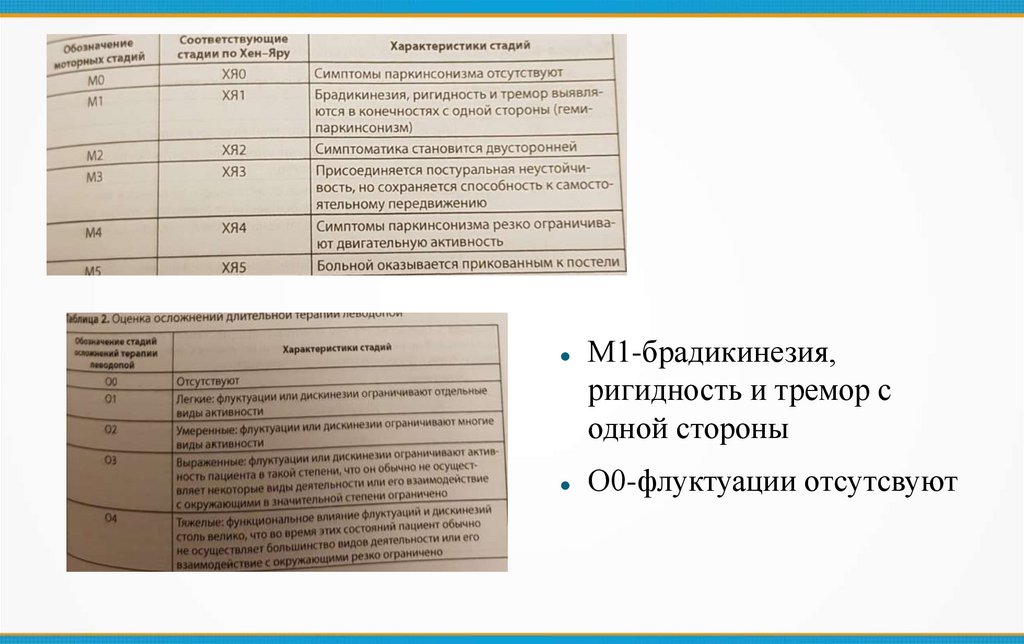преимущественно основаны на характеристике соответствующих пунктов шкалы MDSUPDRS (Movement Disorder Society Unified Parkinson“s Disease Rating Scale — Унифицированная