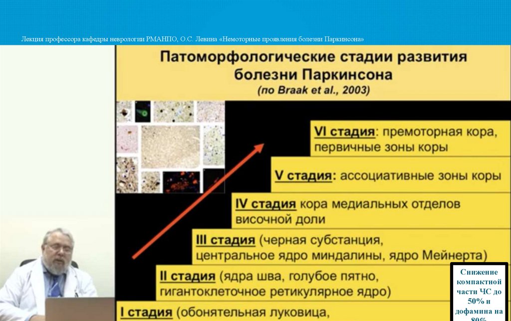 Лекция профессора кафедры неврологии РМАНПО, О.С. Левина «Немоторные проявления болезни Паркинсона»Снижение