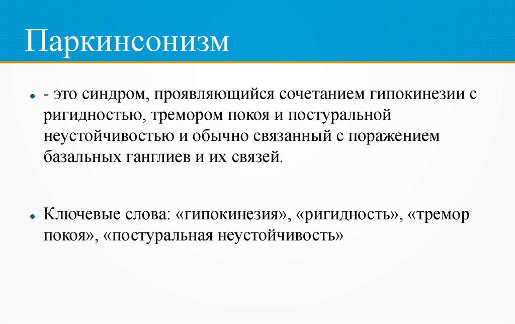 Ключевые слова: «гипокинезия», «ригидность», «тремор